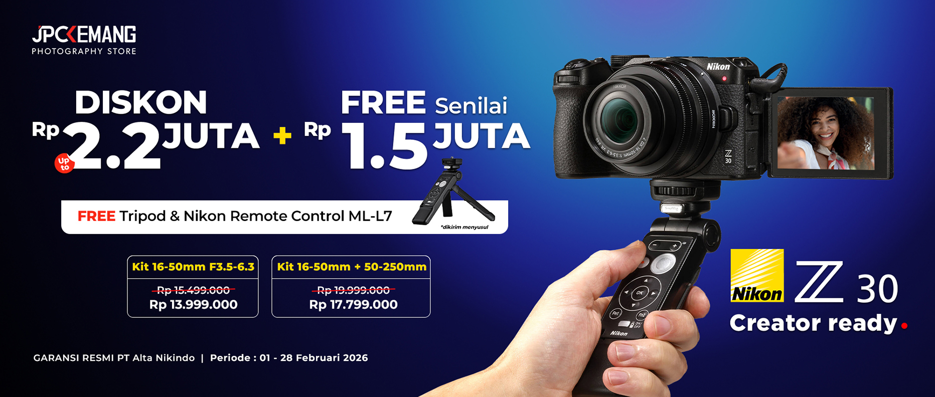 Rp 2.000.000Promo Rp 39.999.000 Warranty :2 Tahun Nikon Alta Nikindo