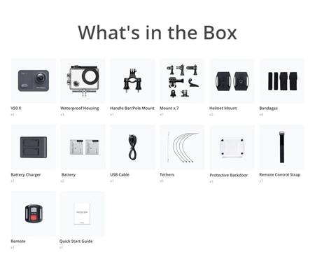 The new version of the V50 X Action Camera from AKASO captures UHD 4K video at 30 fps and 20MP JPEG images in many action-packed applications—from diving under the sea to mountain biking—thanks to its included mounts and accessories. An adjustable 170° field of view and various modes from time-lapse to slow motion give you creative control over your subject. Electronic image stabilization and distortion calibration ensure your footage remains smooth and high quality.