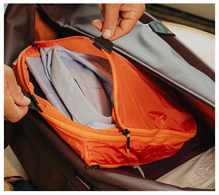 Compressible, easy to access, and instantly dividable, Peak Design Packing Cubes are functionally and aesthetically unmatched. A unique tear-away zipper lets you access contents quickly, unlike standard packing cubes with U-zip openings. An internal divider lets you separate clean and dirty clothes, and allows each compartment to expand/contract based on its contents. And, an expansion/compression zip provides additional space, or the ability to compress contents once packed. Outer shell is a beautiful, self-healing 70D nylon/poly blend.