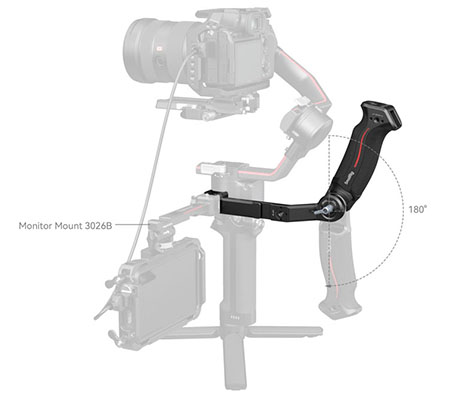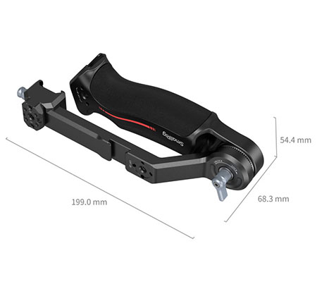 SmallRig Sling Handle for DJI RS 2 / RSC 2 / RS 3 / RS 3 PRO / RS 3 mini / RS 4 / RS 4 Pro / RS 4 Mini 3028D is designed to reduce arm fatigue during low-angle shooting and offers plentiful accessory mounting options. Equipped with a NATO rail for connection and features a locating pin to ensure safe and quick operation. Multiple 1/4”-20 threaded holes and ARRI 3/8”-16 location holes are built-in on the handle which allows for mounting Magic Arm 2115 and Monitor Mount 2903. With two cold shoe mounts on top and side of the handle, it can be mounted with Wireless GO and a sound receiver. Side NATO rail can attach the Monitor Mount 3026B. The handle’s angle can be adjusted to 180° via a ratchet knob and can be used as a side handle to meet the needs of different shooting scenarios. Ergonomically-designed & curved grip with anti-slip silicone gives you more comfort while holding it. Its sleek design and compact structure match perfectly with the stabilizer.