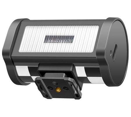 Featuring a xenon light source with a standard 5600K color temperature, it delivers clean, natural-looking colors. It supports both on-camera use via hot shoe and off-camera triggering, and is compatible with cameras that have hot shoe contacts.