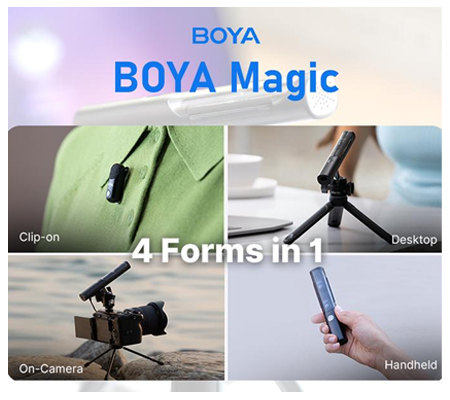 BOYA Magic brings together a wireless lapel mic, handheld mic, desktop mic, and on-camera mic in one compact design. Take your studio on the road — as easy to carry as slipping a marker into your bag. Whether you're in the field, in a studio, or on the move, Magic adapts to your workflow while delivering pro-level sound in a minimalist package.