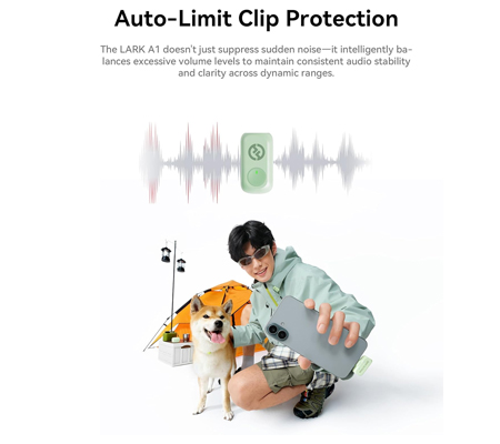 Say goodbye to unexpected audio peaks. The LARK A1's intelligent Auto-Limit feature smooths out volume spikes in real time, preserving clarity and stability in every take.