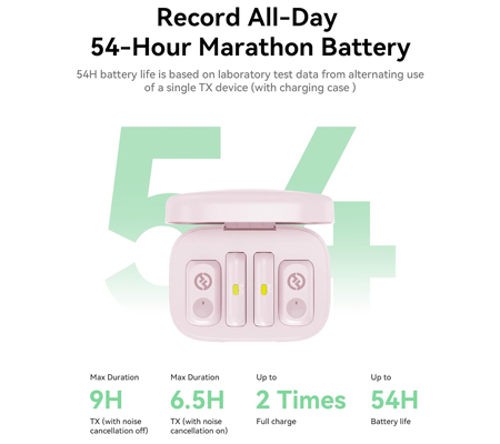 Delivering pristine 48 kHz/24-bit high-fidelity audio, the LARK A1 captures every nuance with precision. Its 3-level intelligent noise cancellation effectively reduces ambient sound, ensuring clear and natural audio. Users can further tailor their sound with adjustable EQ, reverb, and 6-level gain control, while the intelligent auto-limit function maintains consistent volume levels and prevents distortion. The clip-on mics feature a sleek, low-profile design, weighing just 0.3 oz, and offer flexible placement via hidden magnetic attachments. Thanks to the included charging case, the transmitters can be swapped on the go, enabling up to 54 hours of uninterrupted operation.