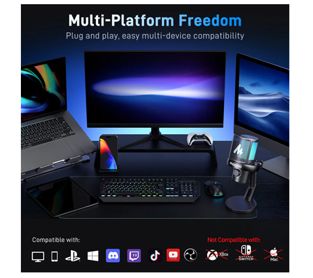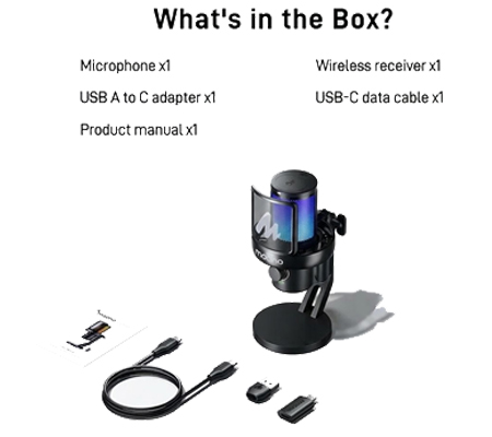The game streaming microphone features both USB and USB-C wireless plugs, ensuring seamless compatibility with computers, PCs, and laptops. Simply plug it in, and you're ready to go!