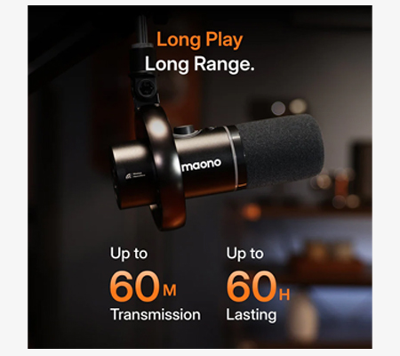 • Wireless Working Distance : 60m Max. (under line-of-sight conditions, based on Maono laboratory tests)