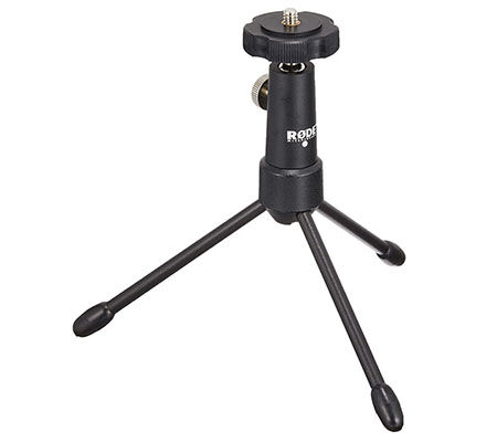 A collapsible mini tripod designed for mounting lightweight microphones that support either 1/4" or 3/8” mounting. The tripod allows you to mount the microphone on any surface that will give you a concentrated and centralized location for picking up sound. It provides 360 degree rotation and a wide angle of vertical adjustment. The tripod stand is fitted with a 1/4" thread, and ships with 3/8” thread adapter for use with most standard mic clips.