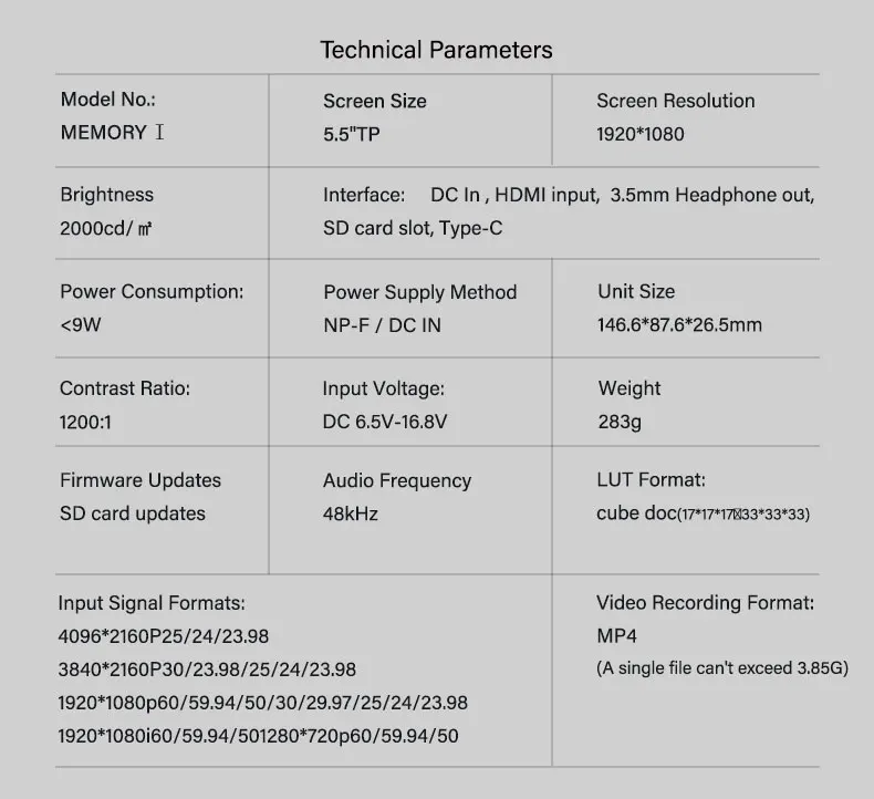Shimbol Memory I 5.5 Inch 3D LUT 4K HDMI Touchscreen Recorder Monitor